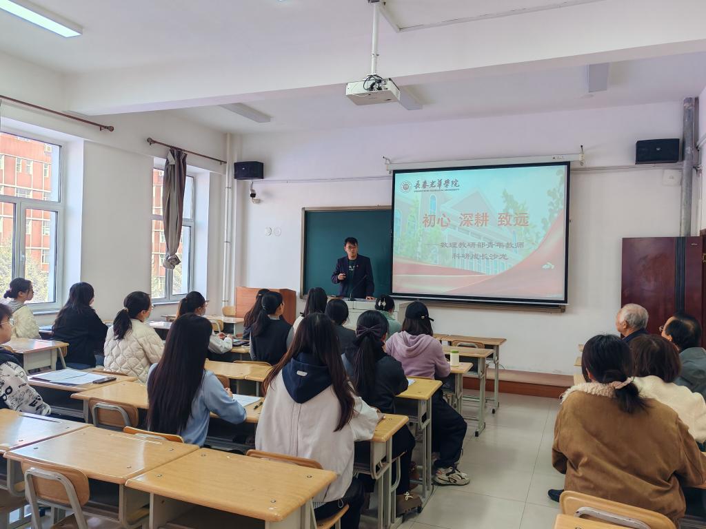 活动伊始,数理教研部副主任王帅作开场致辞。他强调青年教师科研工作既要仰望星空,瞄准学科前沿动态,更要脚踏实地,坚守立德树人初心,将科研与教学紧密结合,以科研反哺教学,用教学滋养科研。随后,新入职教师围绕自己拟开展的科研课题依次进行了汇报。在仔细聆听每位教师的阐述后,刘教授针对每个科研项目,从课题题目的拟定、研究方向的选择,到具体研究内容的逻辑安排与结构设计,都给出了详尽、深入且富有建设性的指导意见。